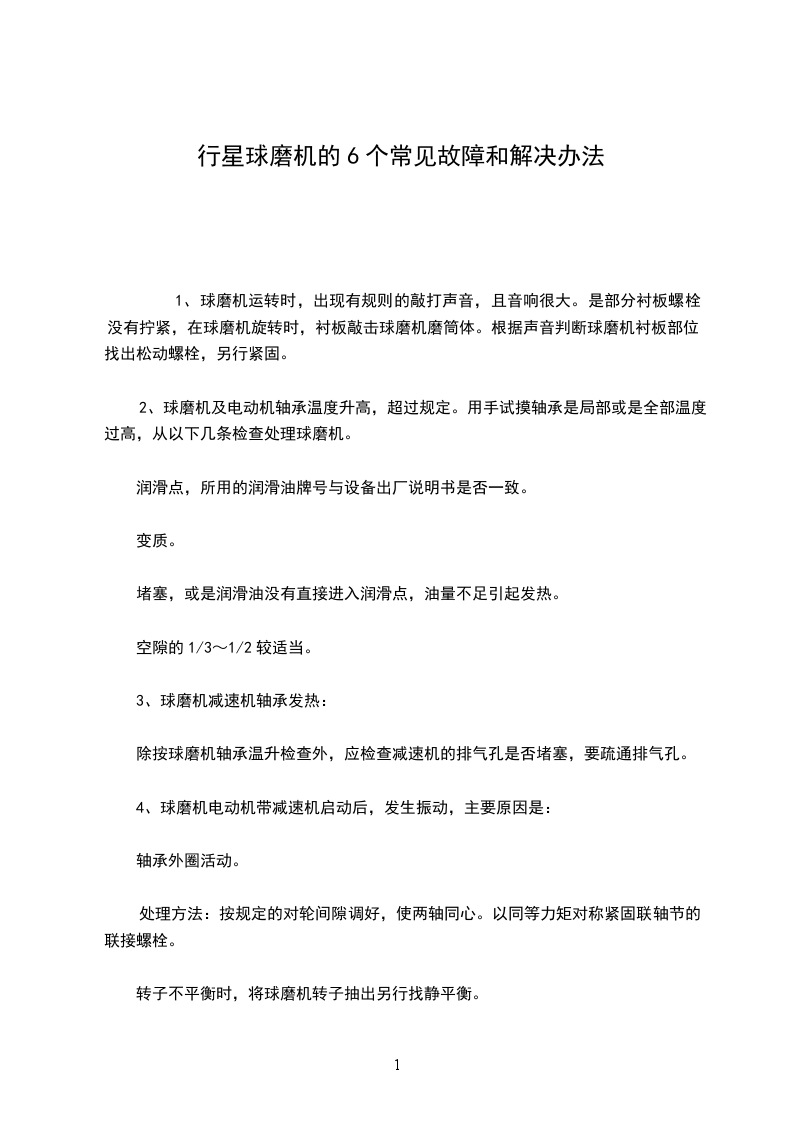 1、球磨机运转时,出现有规则的敲打声音,且音响很大。是部分衬板螺栓没有拧紧,在球磨机旋转时,衬板敲击球磨机磨筒体。根据声音判断球磨机衬板部位,找出松动螺栓,另行紧固。