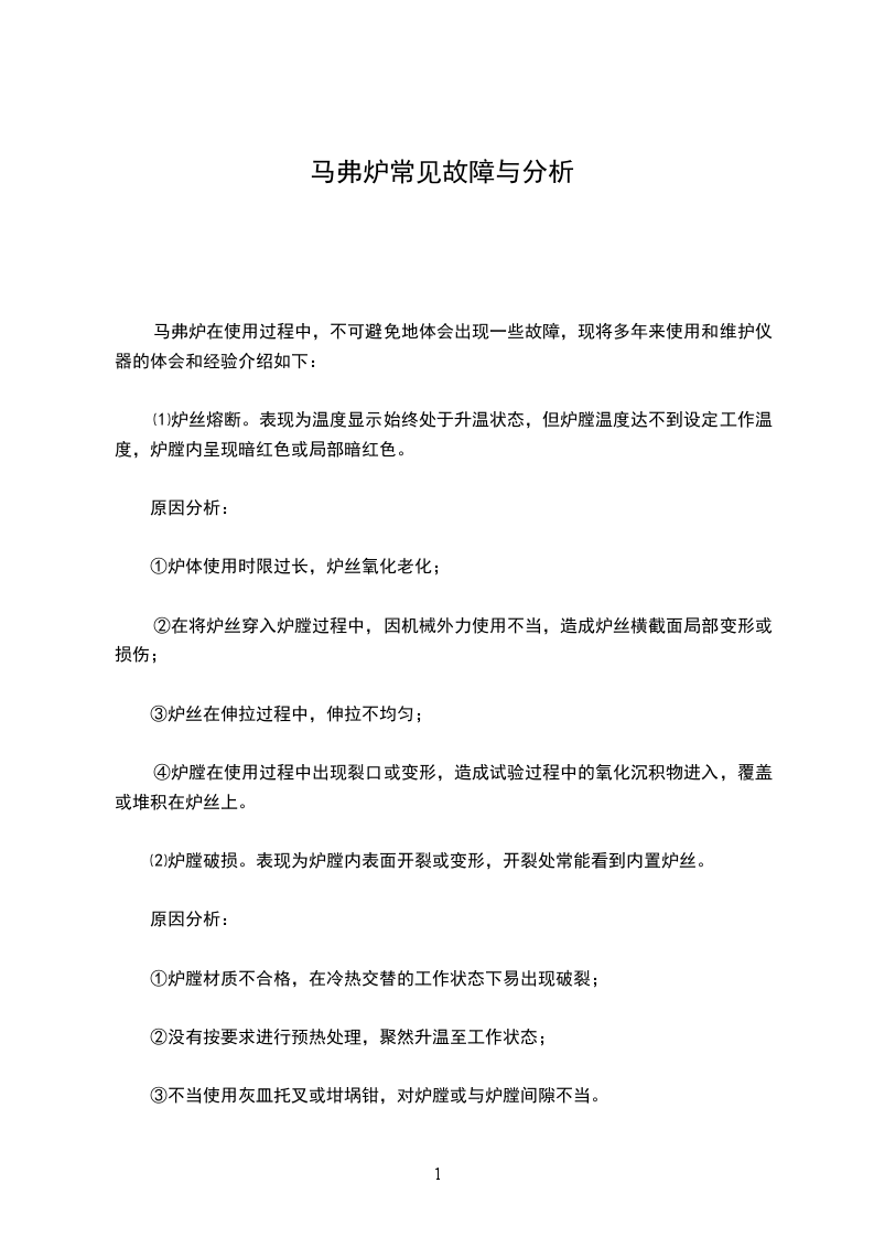 马弗炉在使用过程中,不可避免地体会出现一些故障,现将多年来使用和维护仪器的体会和经验介绍如下: