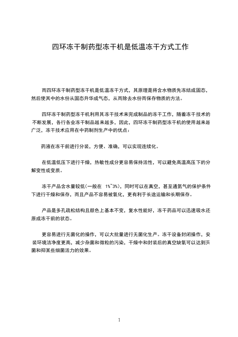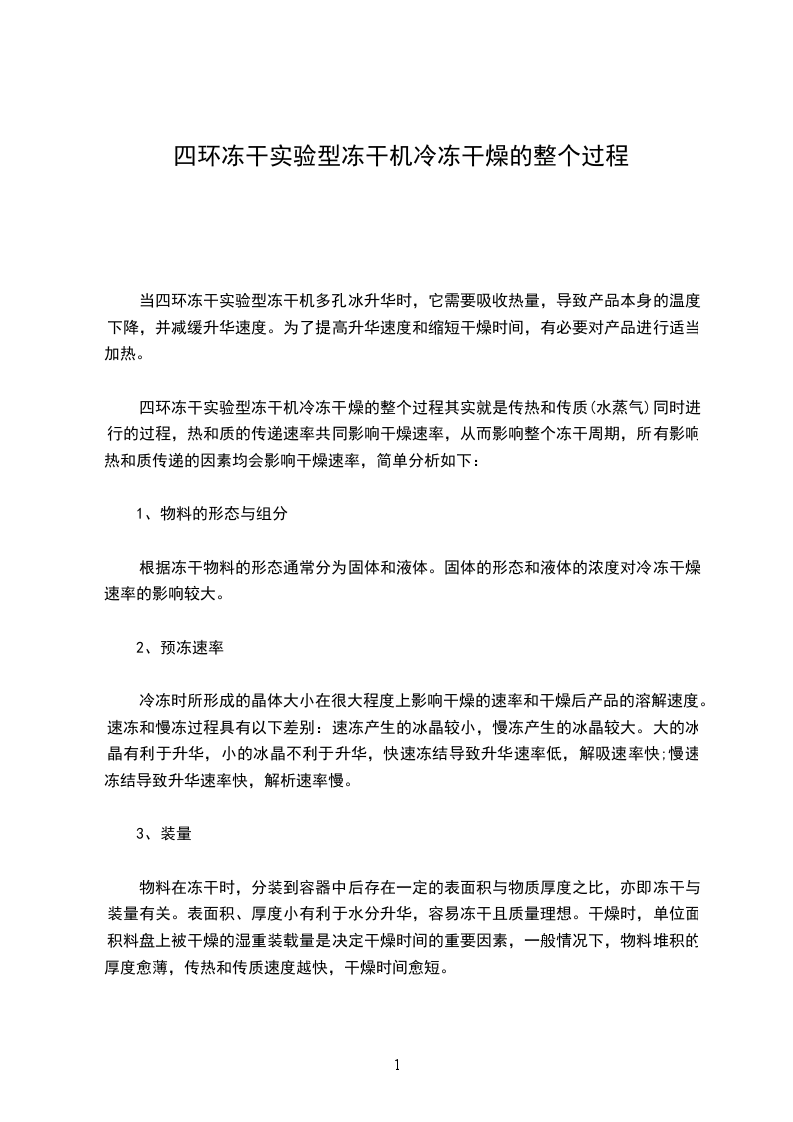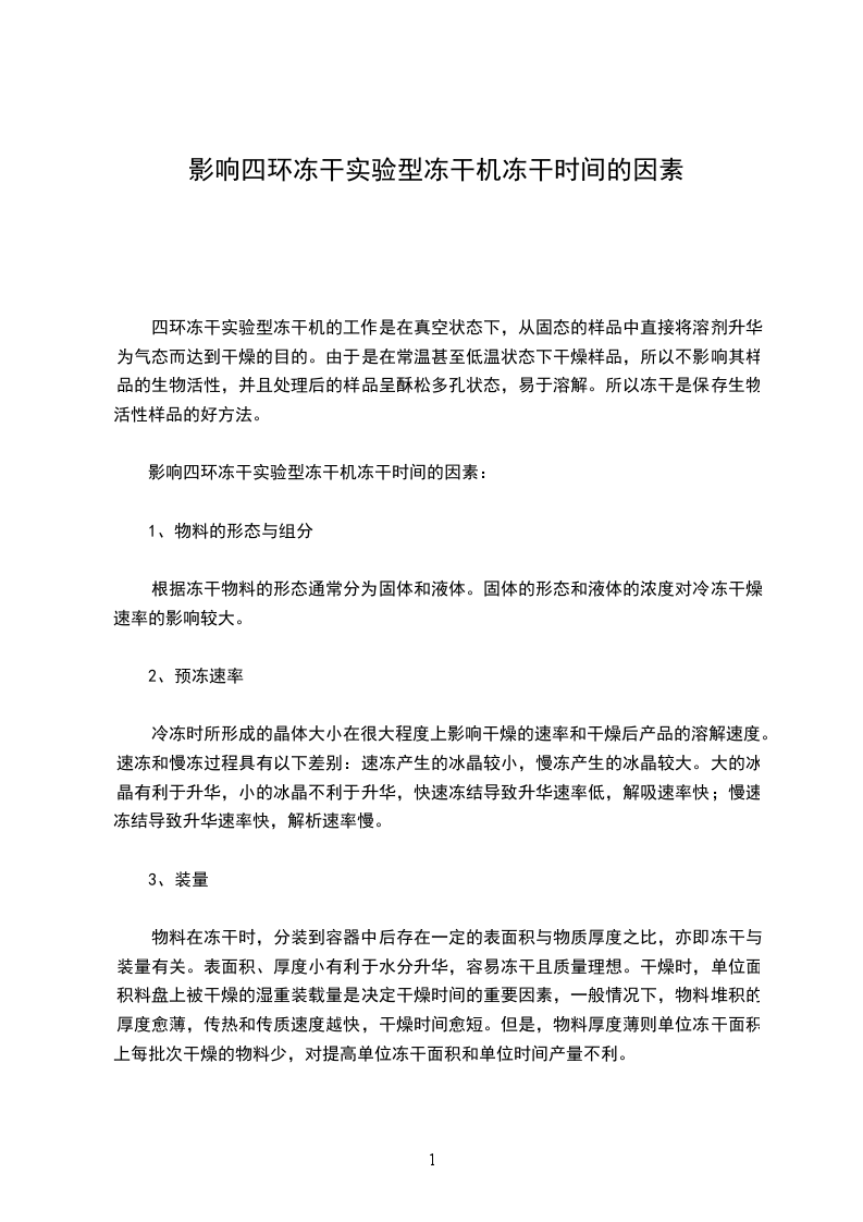 四环冻干实验型冻干机在操作使用前必须要先进行预冻,预冻需要准备低温冰箱,零下40摄氏度,或者是零下80摄氏度的低温冰箱,把准备干燥的物品置于低温冰箱或液氮中,一般需要四个小时左右,可以直接从外面进行观察到,物品完全冰冻结实后,才可进行冷冻干燥的实验,把物品迅速移动到冷冻干燥机托盘之内,以保证冷冻干燥效果。