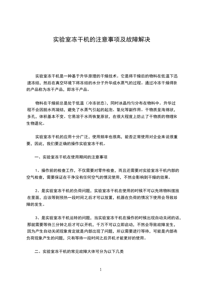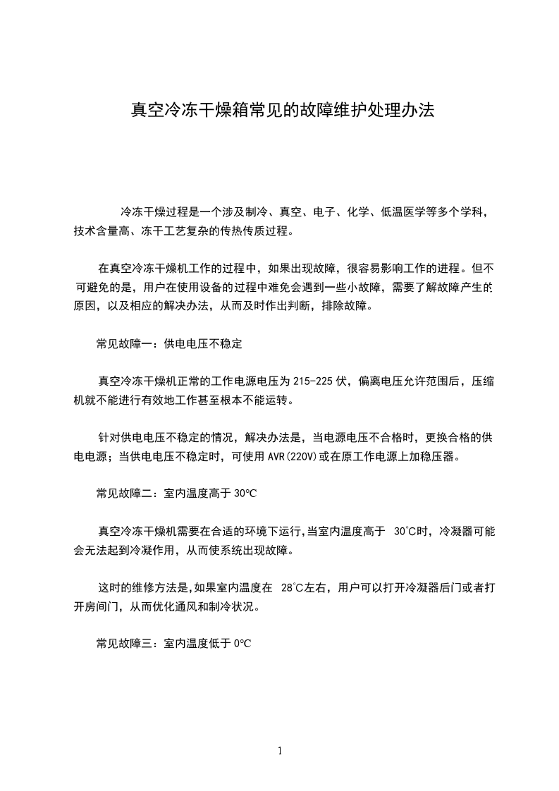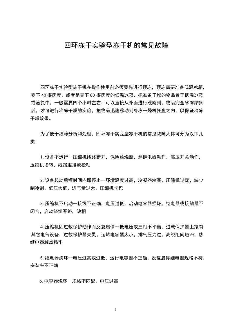 为了便于故障分析和处理,四环冻干实验型冻干机的常见故障大体可分为以下几类: