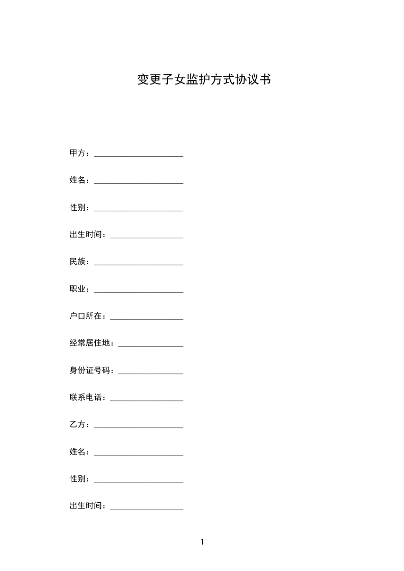 由于乙方情况发生变化(请说明原因),双方同意变更监护方式。