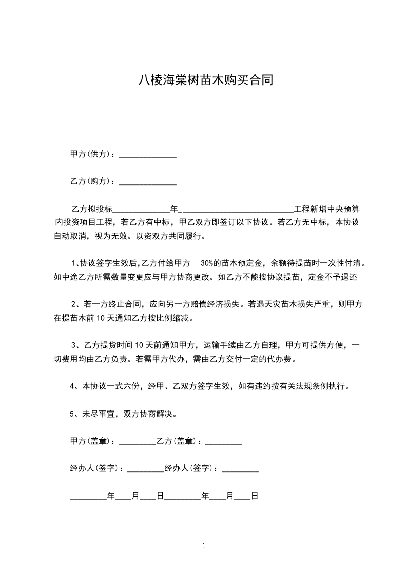 甲方向乙方采购苗木______株,金额为______人民币。甲方与乙方按实际采购苗木数量,按实结算。