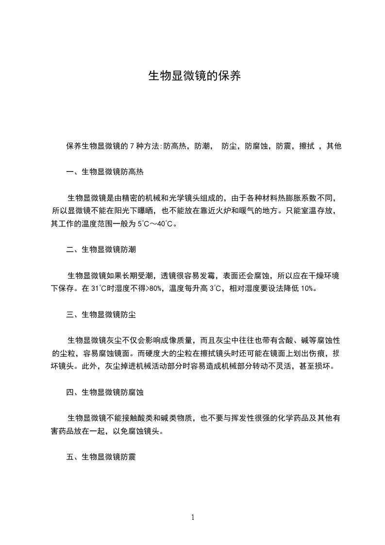 保养生物显微镜的7种方法:防高热,防潮, 防尘,防腐蚀,防震,擦拭 ,其他
