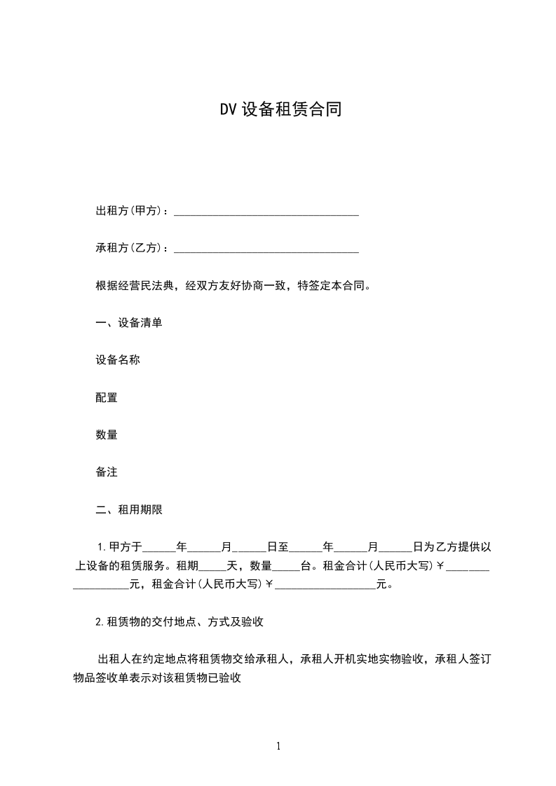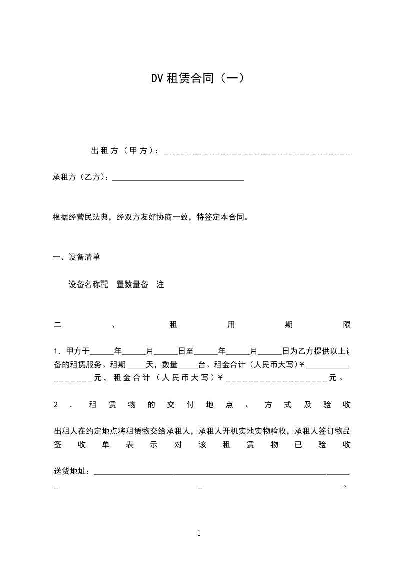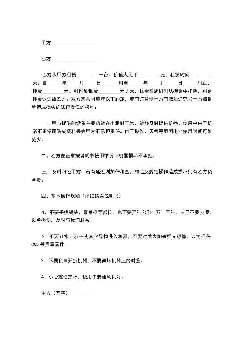 1.甲方于______年______月______日至______年______月______日为乙方提供以上设备的租赁服务。租期_____天,数量_____台。租金合计(人民币大写)¥__________________元,租金合计(人民币大写)¥__________________元。