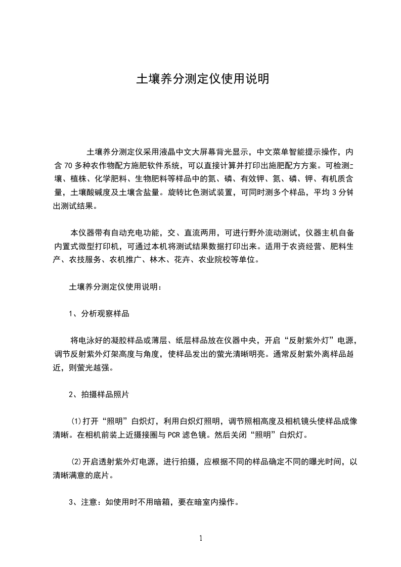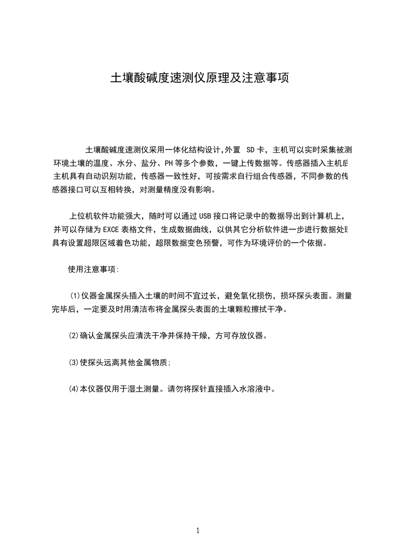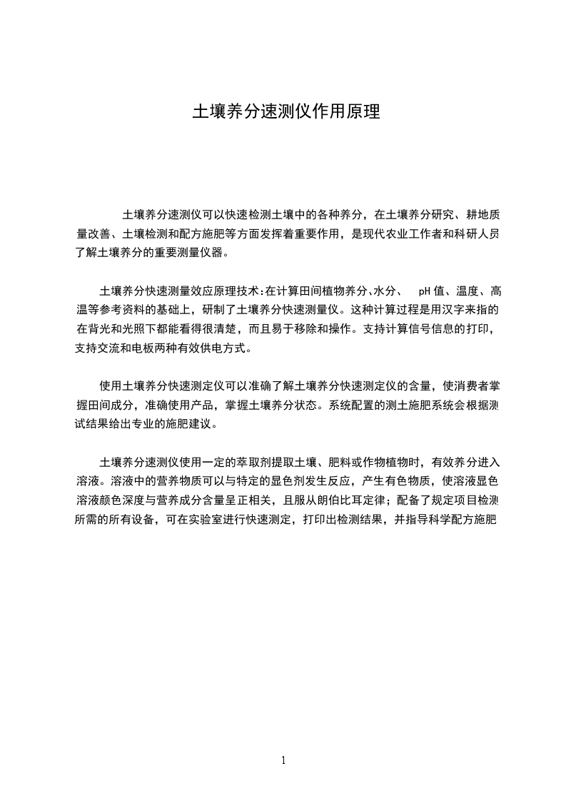 土壤养分快速测量效应原理技术:在计算田间植物养分、水分、pH值、温度、高温等参考资料的基础上,研制了土壤养分快速测量仪。这种计算过程是用汉字来指的,在背光和光照下都能看得很清楚,而且易于移除和操作。支持计算信号信息的打印,支持交流和电板两种有效供电方式。