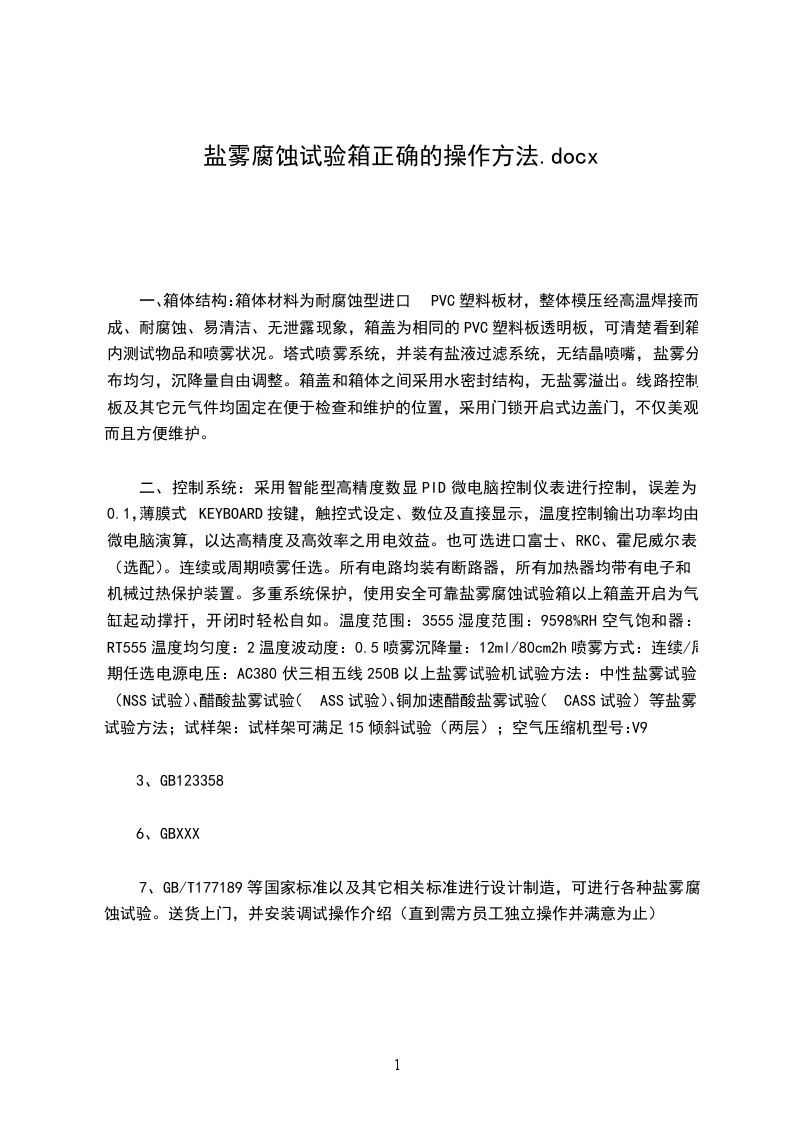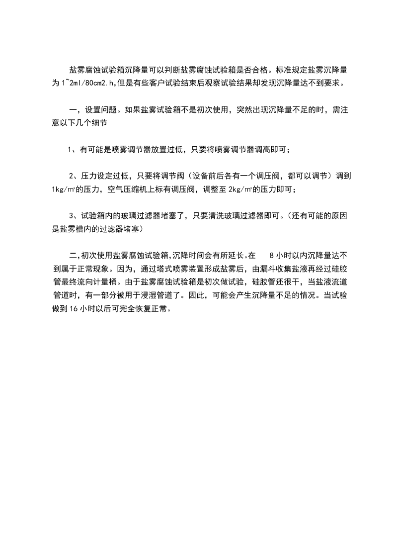 1.中性盐雾试验(NSS试验)是出现最早目前应用领域广泛的一种加速腐蚀试验方法。它采用5%的氯化钠盐水溶液,溶液PH值调在中性范围(6~7)作为喷雾用的溶液。试验温度均取35℃,要求盐雾的沉降率在1~2ml/80cm2.h之间。