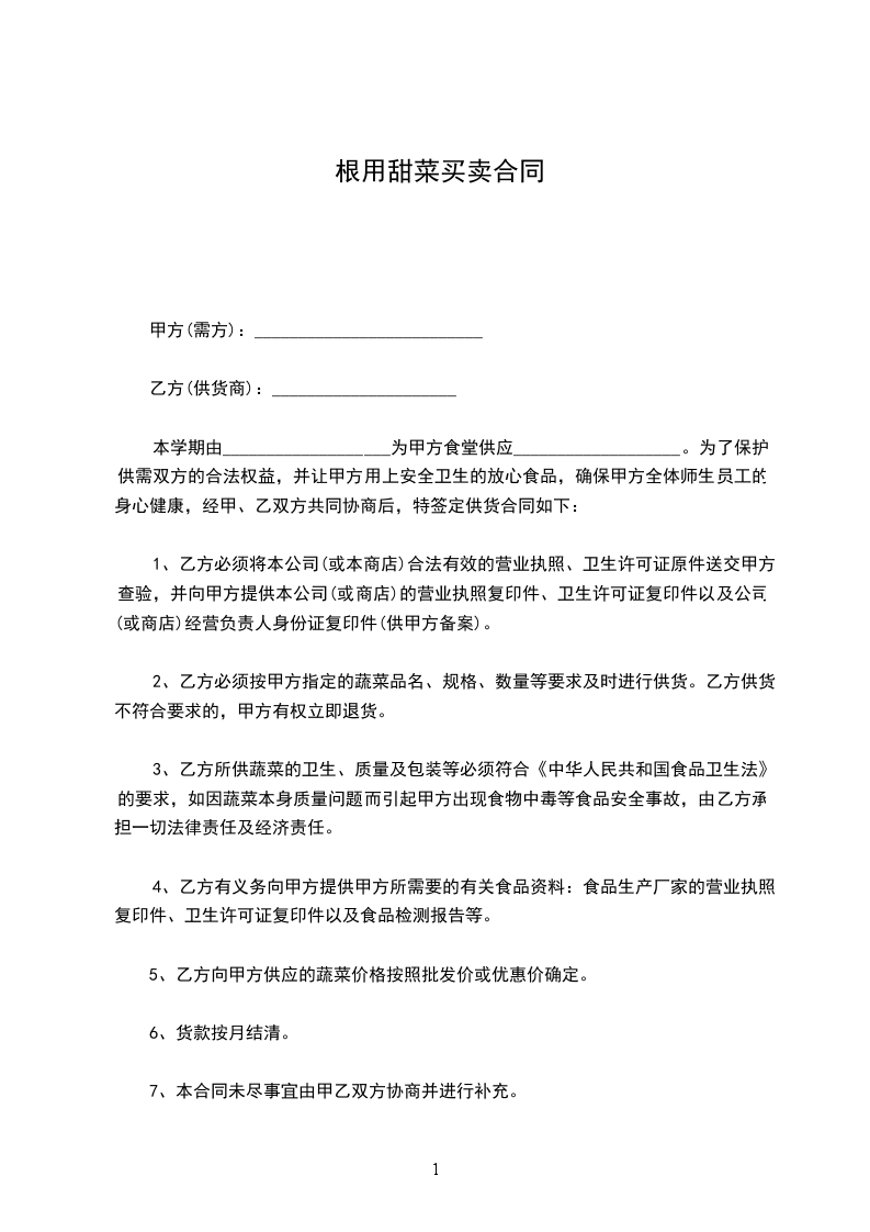 本学期由___________________为甲方食堂供应___________________。为了保护供需双方的合法权益,并让甲方用上安全卫生的放心食品,确保甲方全体师生员工的身心健康,经甲、乙双方共同协商后,特签定供货合同如下: