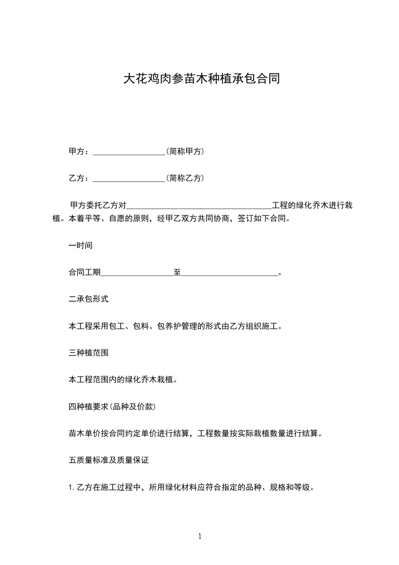 3.苗木栽植:本合同所供苗木由甲方负责栽植。