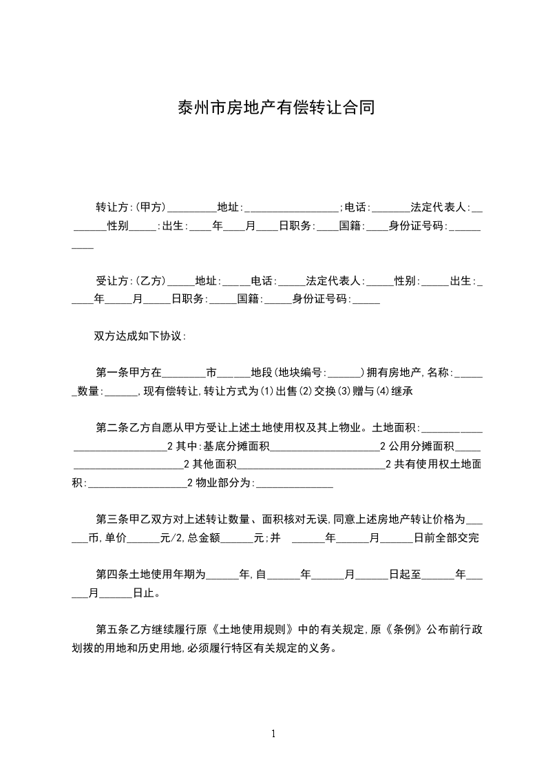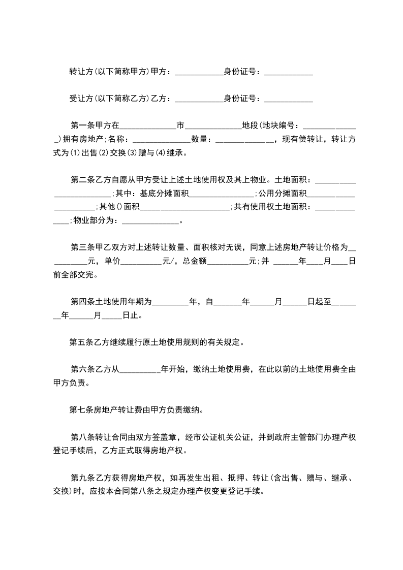 第一条甲方自愿将自有坐落在屋(包括使用权(土地使用权书证号为房)及相应的土地)有偿转让给乙方。