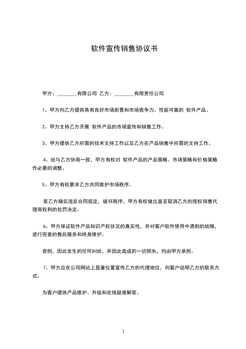 2、甲方支持乙方开展 软件产品的市场宣传和销售工作。
