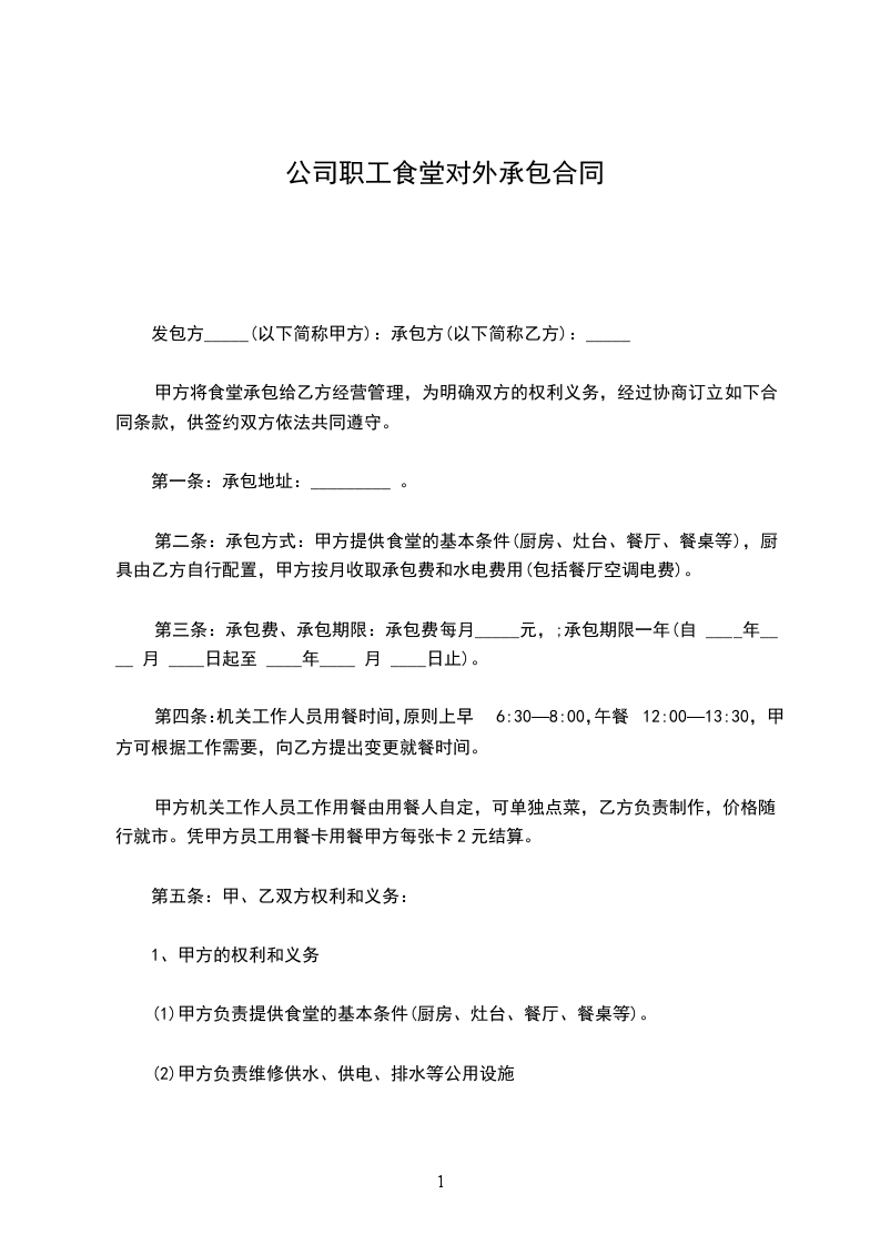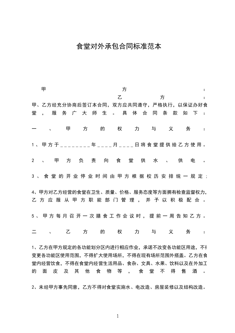 1、甲方于________年____月____日将食堂提供给乙方使用。