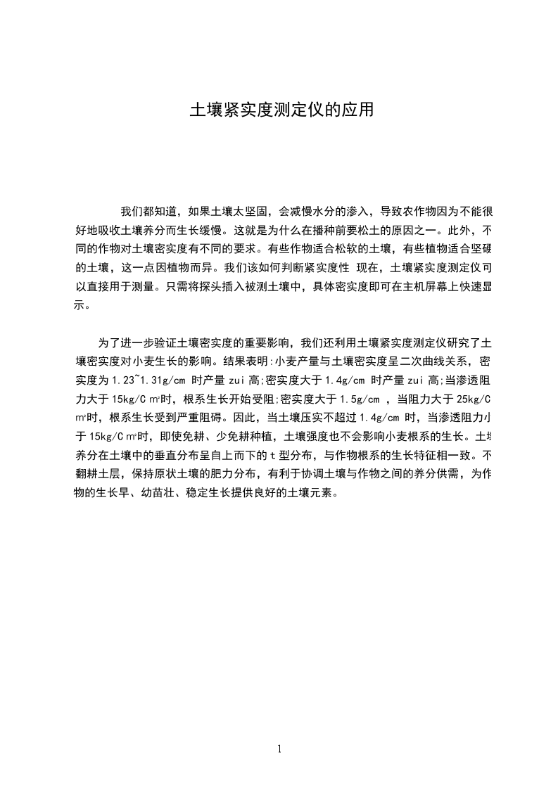 为了进一步验证土壤密实度的重要影响,我们还利用土壤紧实度测定仪研究了土壤密实度对小麦生长的影响。结果表明:小麦产量与土壤密实度呈二次曲线关系,密实度为1.23~1.31g/cm 时产量zui高;密实度大于1.4g/cm 时产量zui高;当渗透阻力大于15kg/C㎡时,根系生长开始受阻;密实度大于1.5g/cm ,当阻力大于25kg/C㎡时,根系生长受到严重阻碍。因此,当土壤压实不超过1.4g/cm 时,当渗透阻力小于15kg/C㎡时,即使免耕、少免耕种植,土壤强度也不会影响小麦根系的生长。土壤养分在土壤中的垂直分布呈自上而下的t型分布,与作物根系的生长特征相一致。不翻耕土层,保持原状土壤的肥力分布,有利于协调土壤与作物之间的养分供需,为作物的生长早、幼苗壮、稳定生长提供良好的土壤元素。