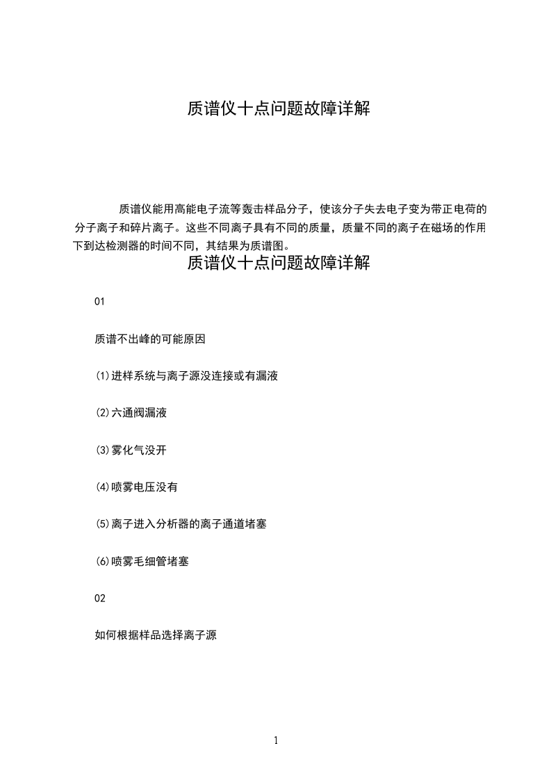 质谱仪十点问题故障详解