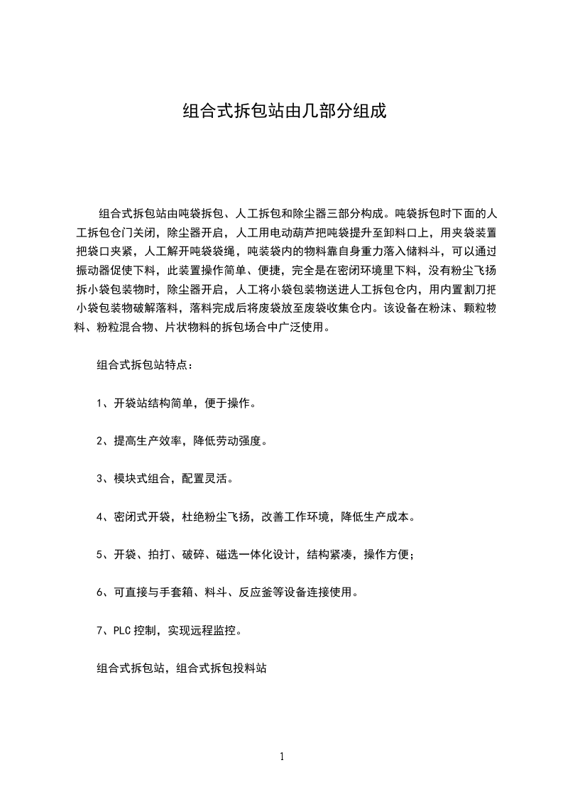组合式拆包站特点: