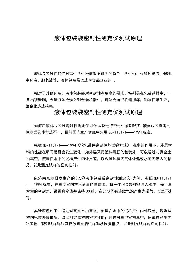 如何用液体包装袋密封性测定仪对包装袋进行密封性能测试呢 液体包装袋密封性测试具体方法不一,目前国内生产实践中常用GB/T15171——1994标准。