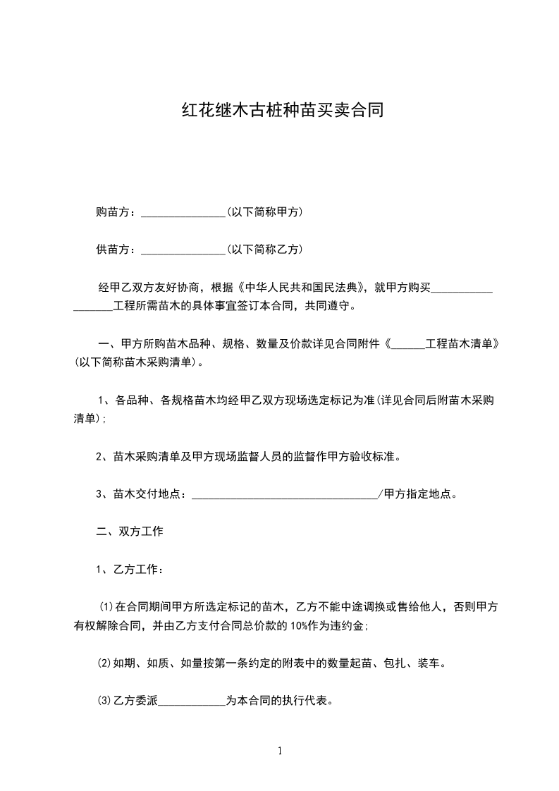一、甲方向乙方采购________________________________苗木________株,金额为人民币.甲方与乙方按实际采购苗木数量,按实结算。