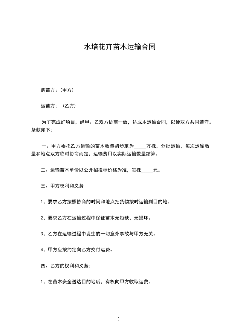 一、甲方向乙方采购苗木_____棵