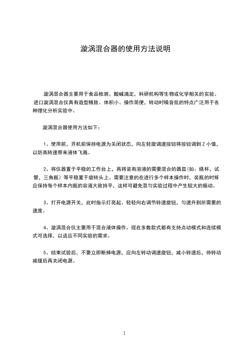 漩涡混合器使用方法如下: