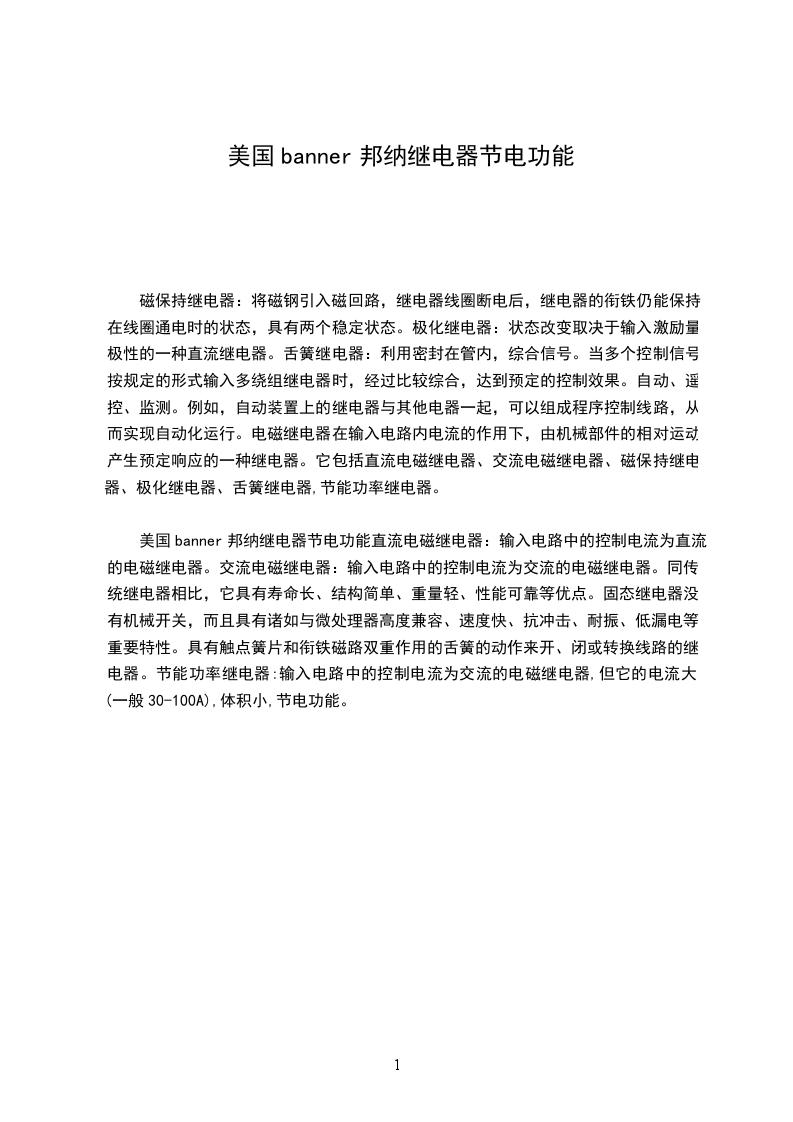 美国banner邦纳继电器节电功能直流电磁继电器:输入电路中的控制电流为直流的电磁继电器。交流电磁继电器:输入电路中的控制电流为交流的电磁继电器。同传统继电器相比,它具有寿命长、结构简单、重量轻、性能可靠等优点。固态继电器没有机械开关,而且具有诸如与微处理器高度兼容、速度快、抗冲击、耐振、低漏电等重要特性。具有触点簧片和衔铁磁路双重作用的舌簧的动作来开、闭或转换线路的继电器。节能功率继电器:输入电路中的控制电流为交流的电磁继电器,但它的电流大(一般30-100A),体积小,节电功能。