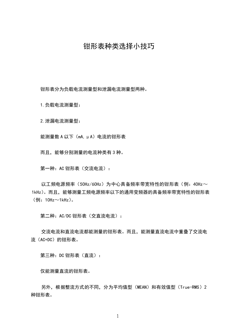 另外,根据整流方式的不同,分为平均值型(MEAN)和有效值型(True-RMS)2种钳形表。