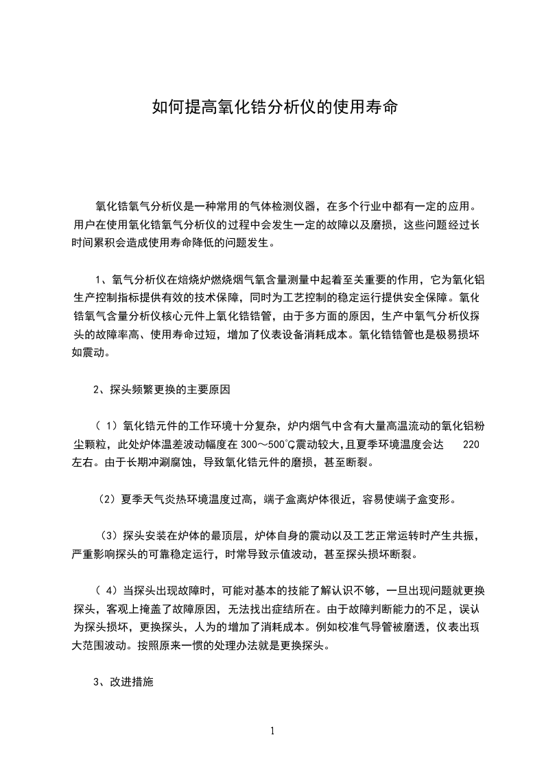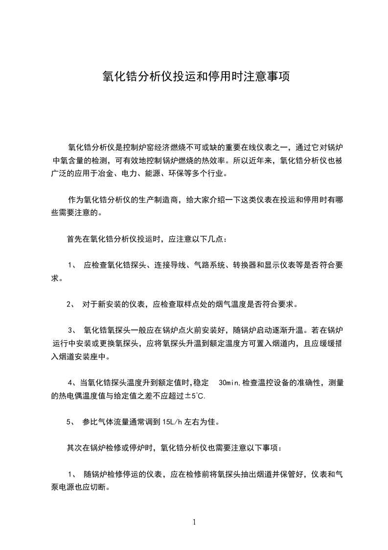 氧化锆分析仪的运行维护 :