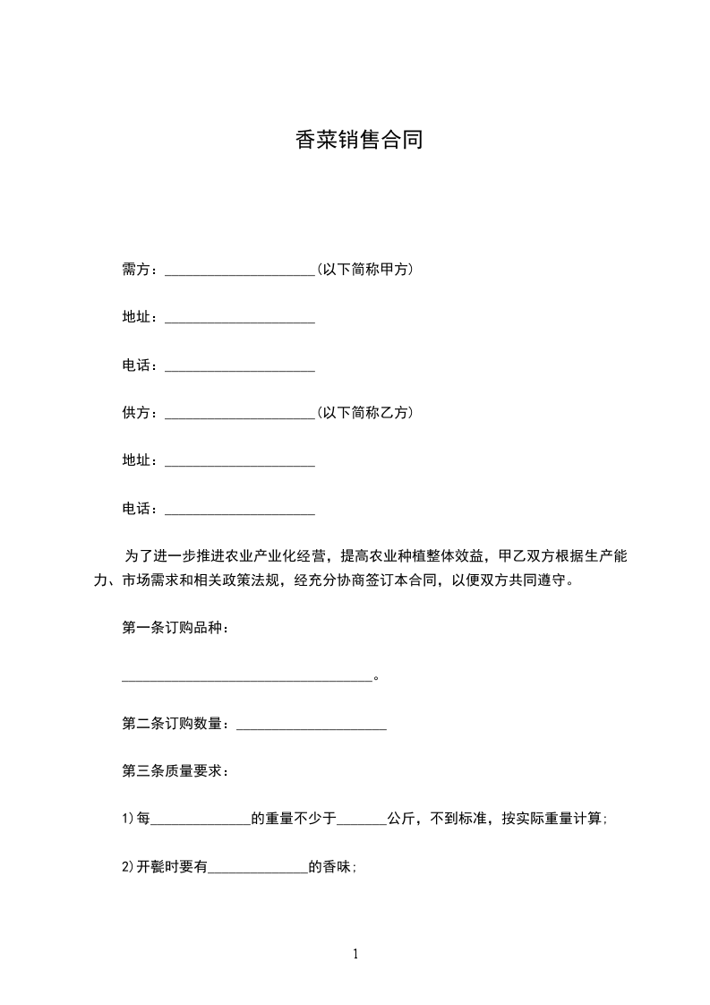 2)不论市场行情价的高低,甲方全部以_______元/_______收购订单合同内的雪菜。