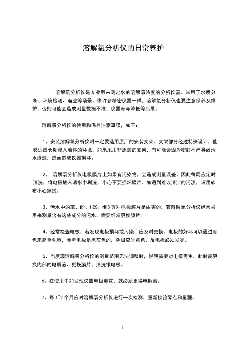 溶解氧分析仪的使用和保养注意事项,如下: