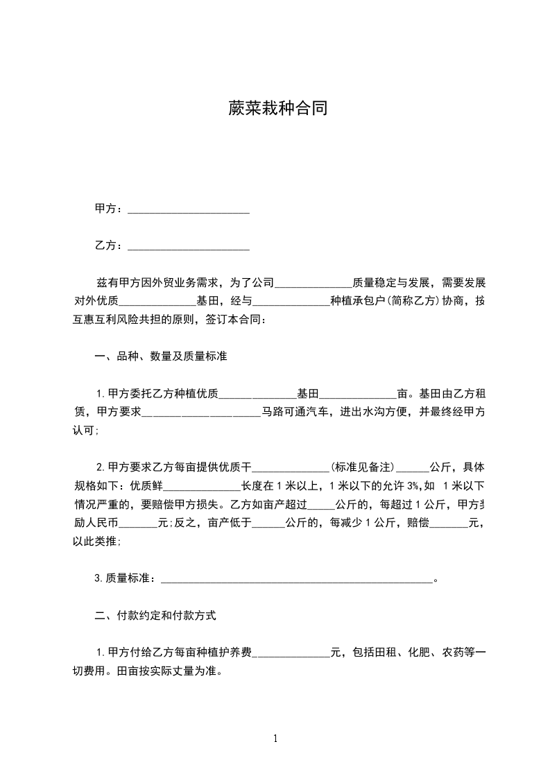 甲、乙双方情况,在供货蔬菜验收合格后采用如下货款结算: