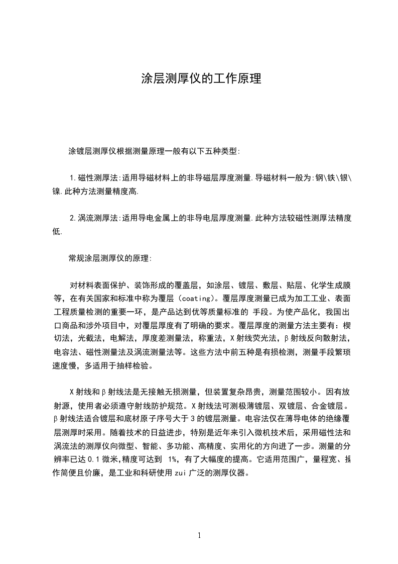 1.磁性测厚法:适用导磁材料上的非导磁层厚度测量.导磁材料一般为:钢\铁\银\镍.此种方法测量精度高.