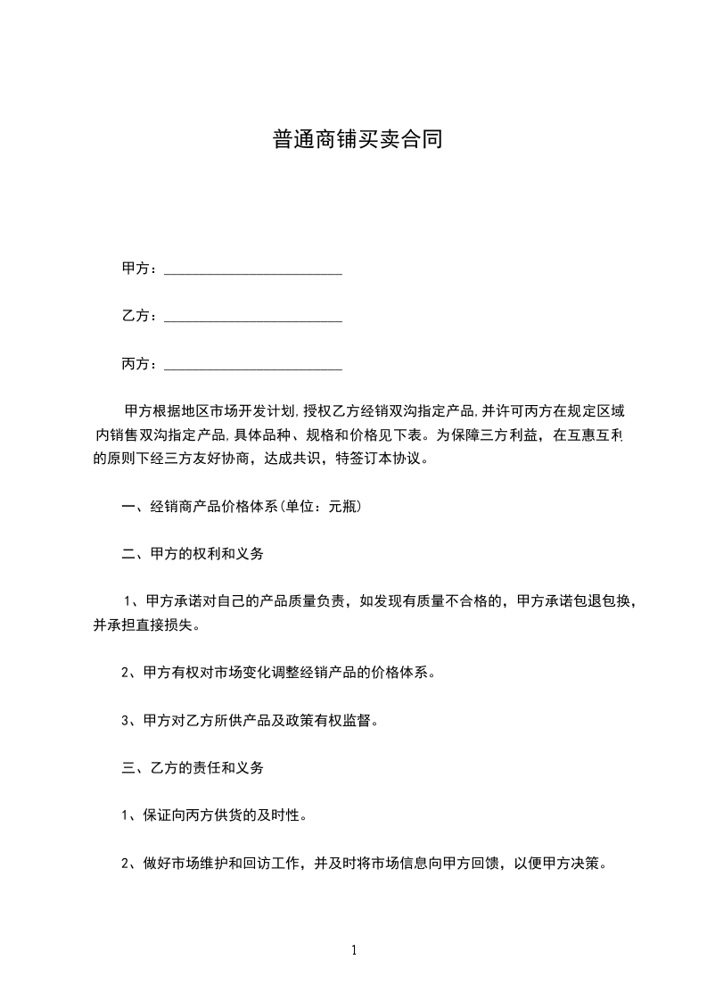 一、丙方同意甲方将自己位于 街(路) 号的店铺(原为: )转让给乙方使用,建筑面积为 平方米;并保证乙方同等享有甲方在原有房屋租赁合同中所享有的权利与义务。