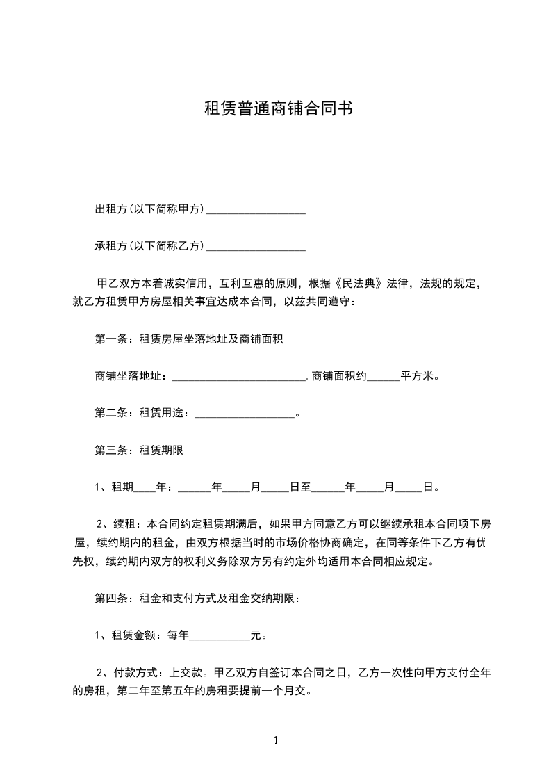 二、丙方与甲方已签订了租赁合同,租期到________年____月____日止,年租金为 元人民币(大写: ),租金为每年交付一次,并于约定日期提前一个月交至丙方。店铺转让给乙方后,乙方同意代替甲方向丙方履行原有店铺租赁合同中所规定的条款,并且每年定期交纳租金及该合同所约定的应由甲方交纳的水电费及其他各项费用。