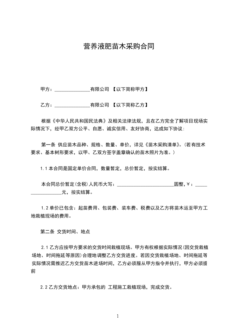 第一条 供应苗木品种、规格、数量、单价,详见《苗木采购清单》。(若有技术要求、基本树形要求,以甲、乙双方签字盖章确认的苗木照片为准。)