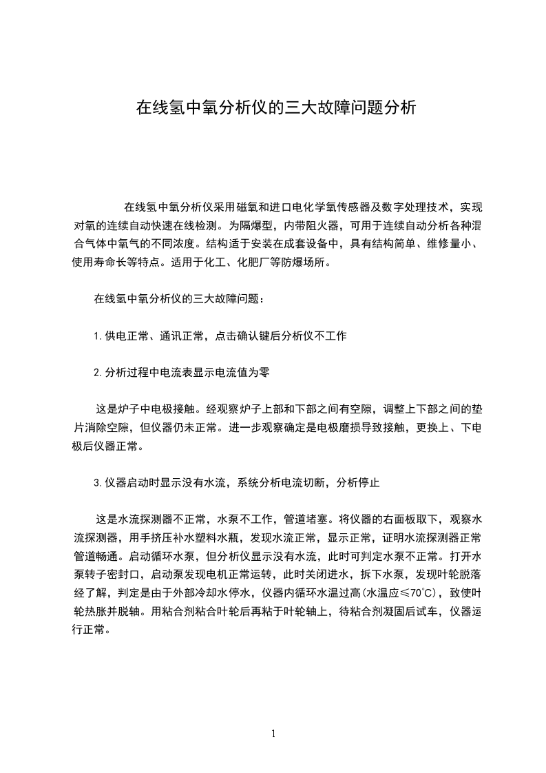 在线氢中氧分析仪的三大故障问题:
