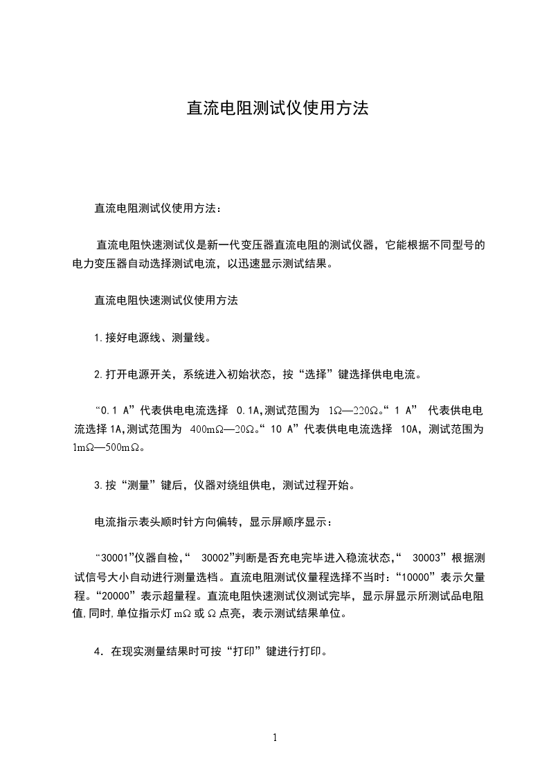 直流电阻快速测试仪是新一代变压器直流电阻的测试仪器,它能根据不同型号的电力变压器自动选择测试电流,以迅速显示测试结果。