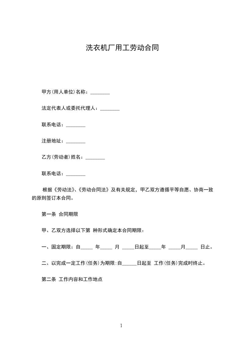 第一条 合同期限