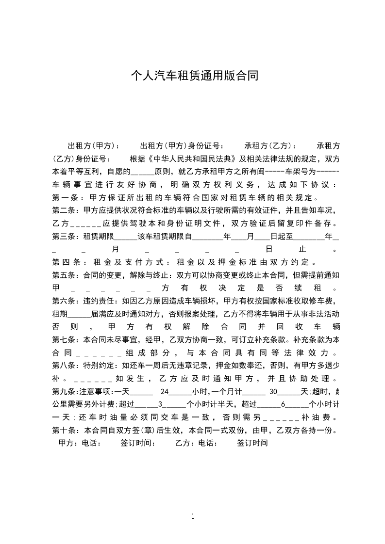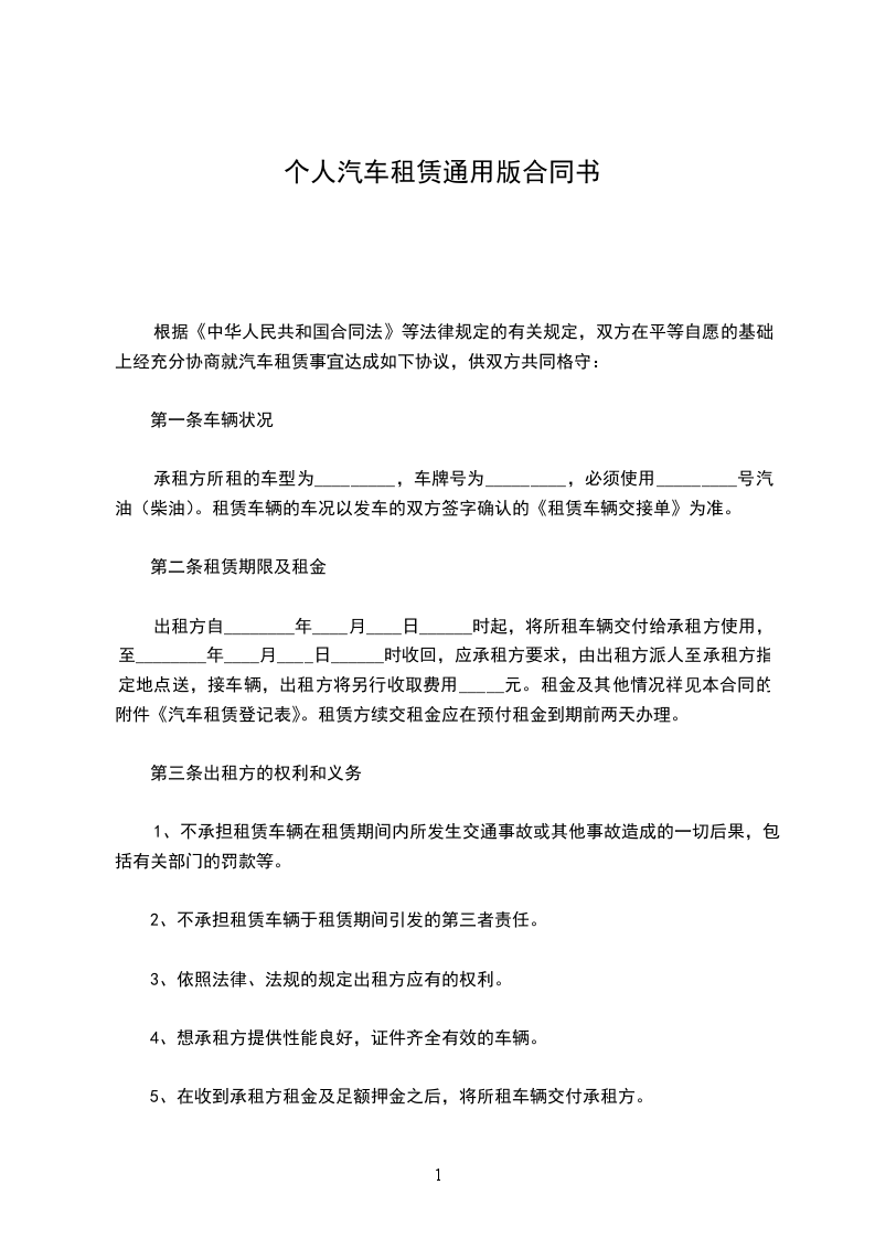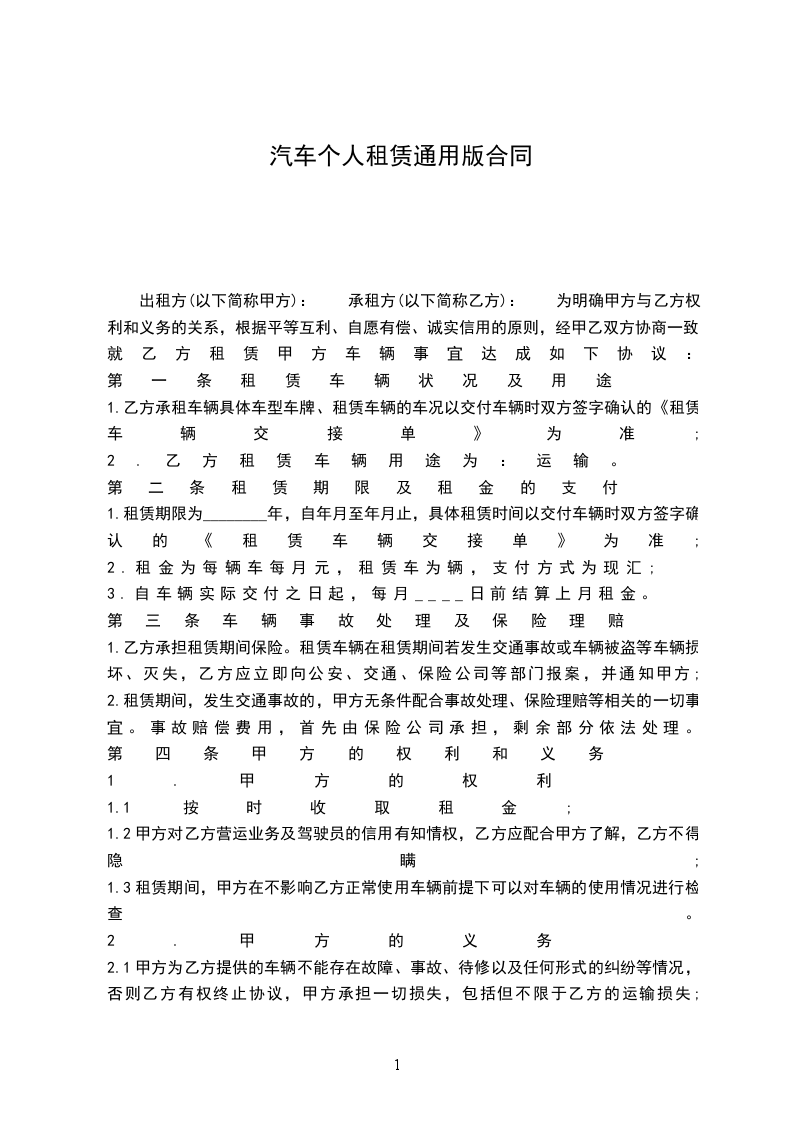 1.租赁期限为________年,自年月至年月止,具体租赁时间以交付车辆时双方签字确认的《租赁车辆交接单》为准;