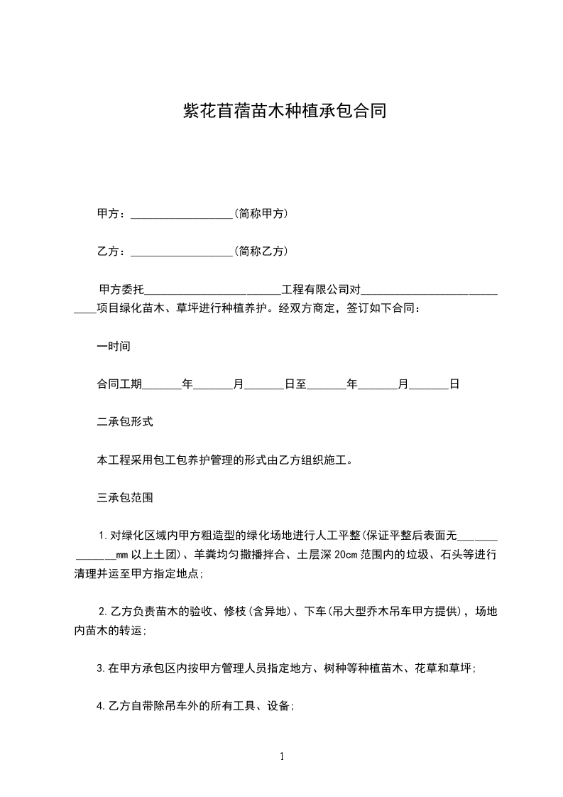 一、甲方向乙方采购苗木,具体的苗木品种、规格、单价等见本合同附件(苗木采购确认表)所列内容。本合同总价为人民币______________元。如遇甲方场地受限等原因不能全部种植,经双方协商,乙方需按甲方实际需要苗木数量进行供苗,按实结算;多出部分甲方有权不予接收或退还,由乙方自行处理。