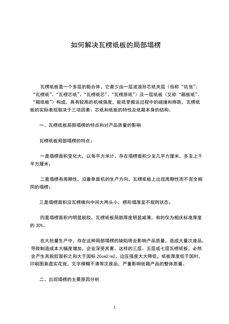 一、瓦楞纸板局部塌楞的特点和对产品质量的影响