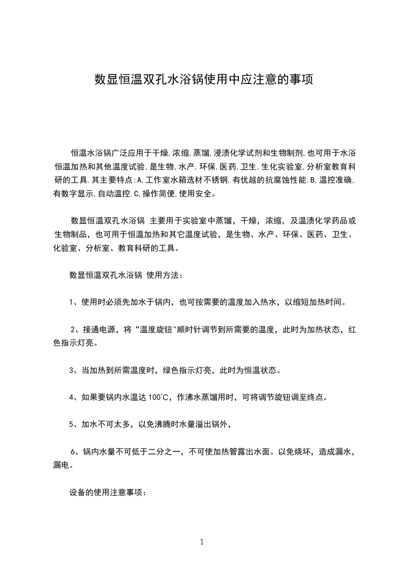 数显恒温双孔水浴锅 使用方法: