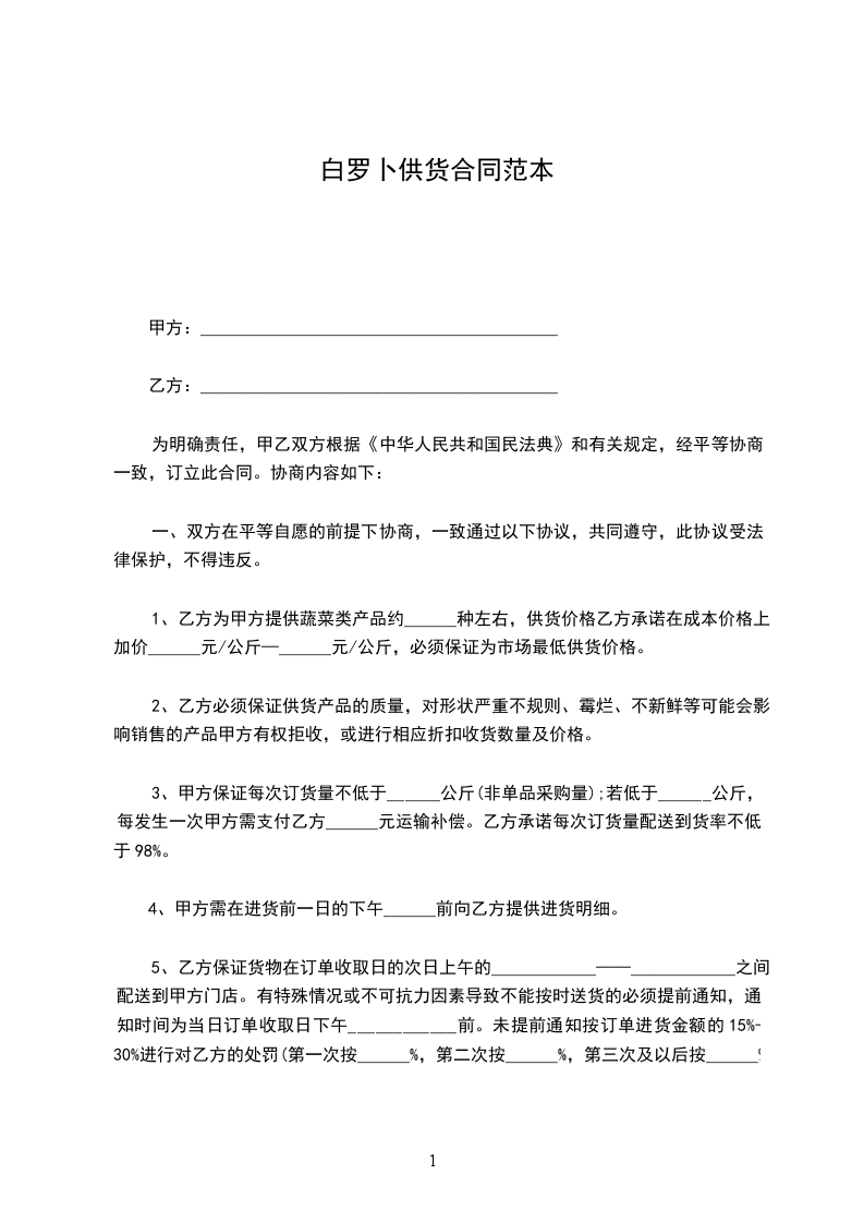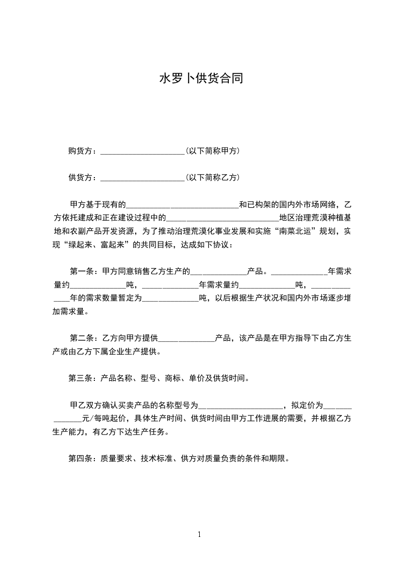第一条:甲方同意销售乙方生产的______________产品。______________年需求量约______________吨,______________年需求量约______________吨,______________年的需求数量暂定为______________吨,以后根据生产状况和国内外市场逐步增加需求量。