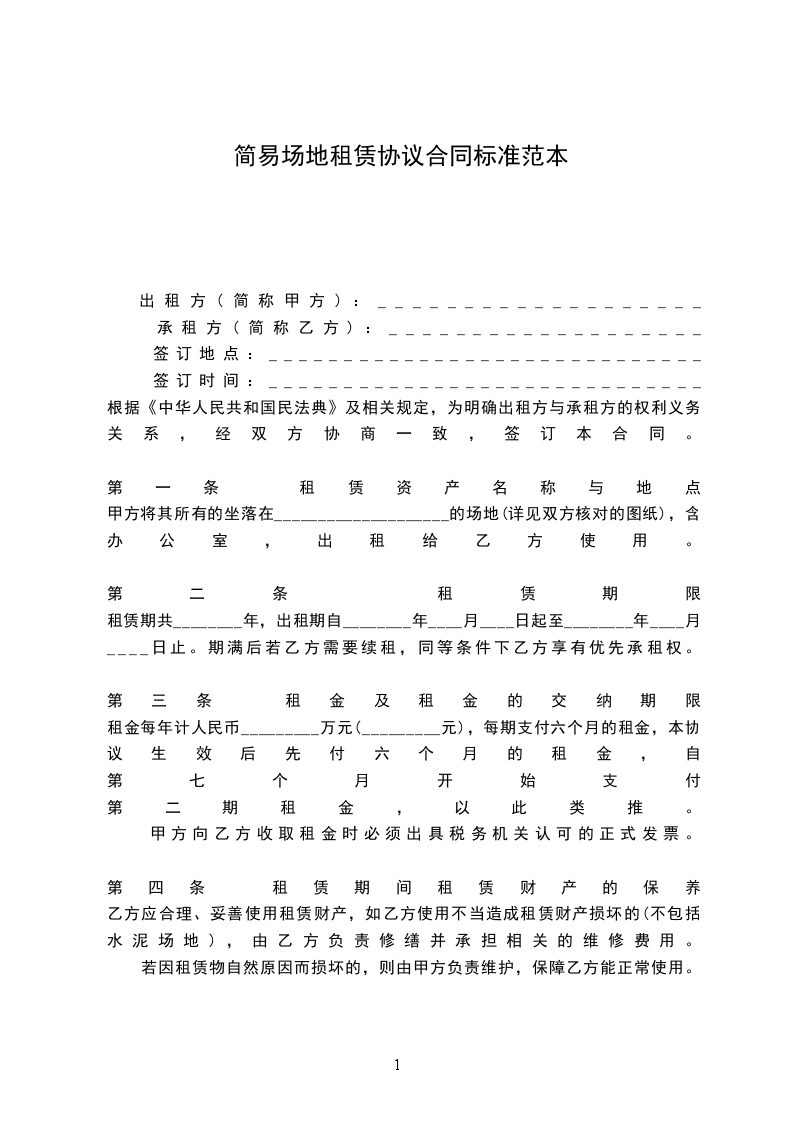 根据《中华人民共和国民法典》及相关规定,为明确出租方与承租方的权利义务关系,经双方协商一致,签订本合同。