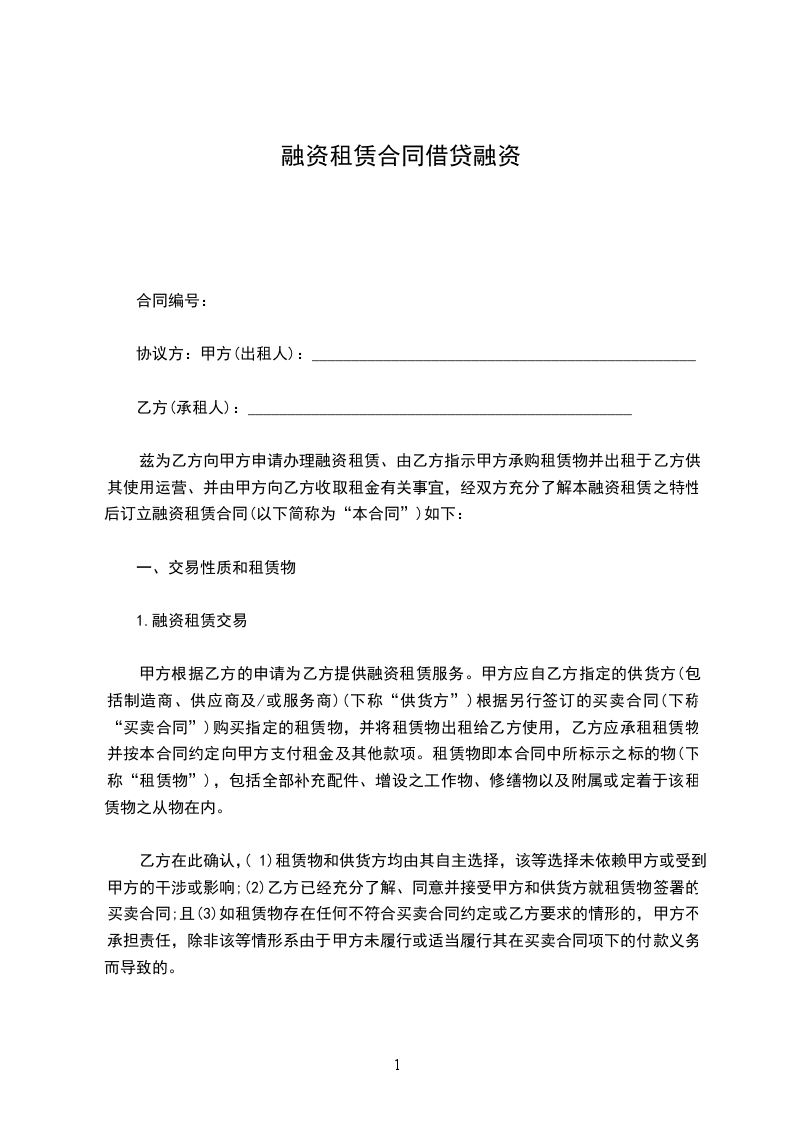1.甲方为乙方融资购买租赁物件,乙方承租租赁物件须向甲方支付租金,租