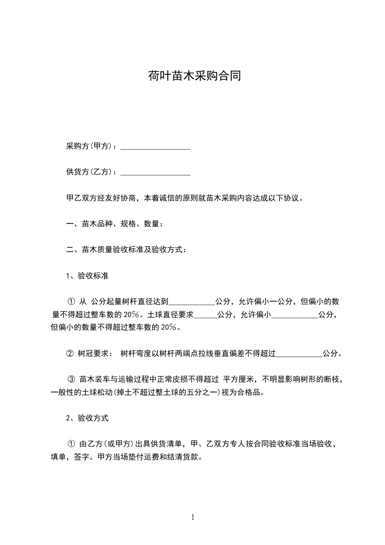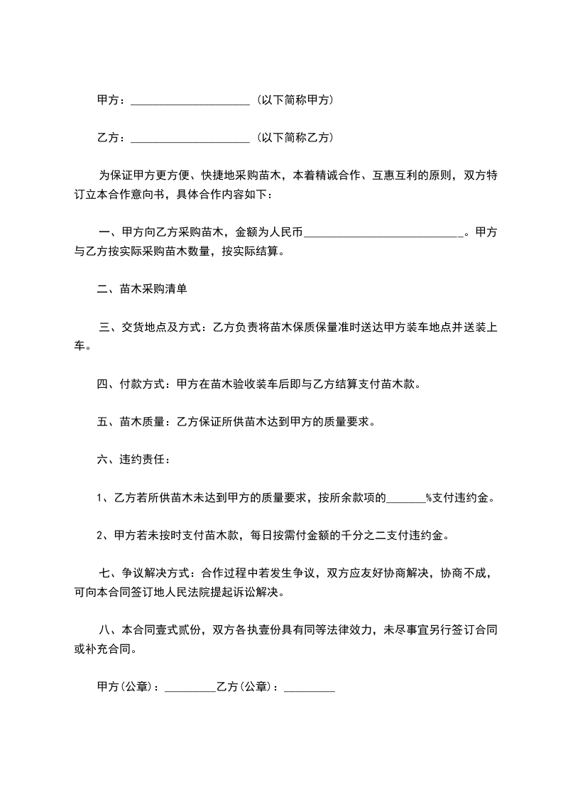 4、本合同为苗木买卖合同,乙方不承担甲方苗木成活率任何风险,但有为甲方提供技术指导的义务。