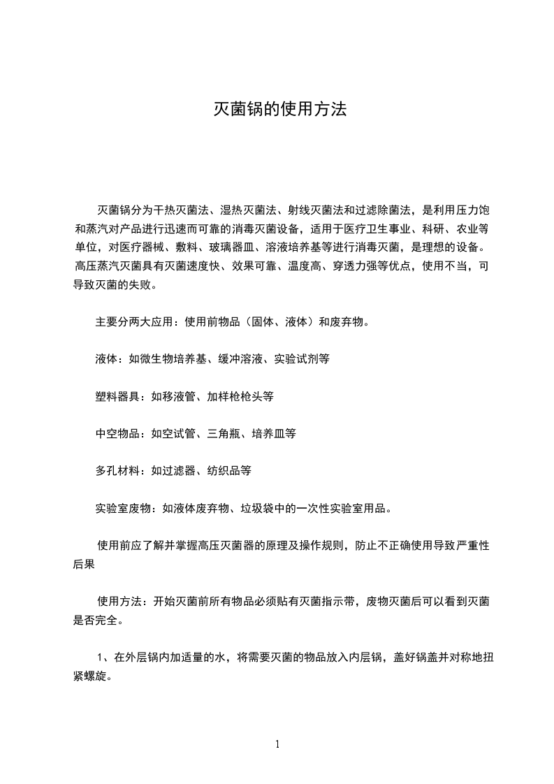 使用前应了解并掌握高压灭菌器的原理及操作规则,防止不正确使用导致严重性后果