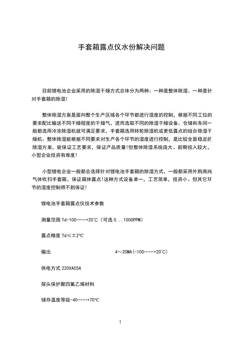 锂电池手套箱露点仪技术参数
