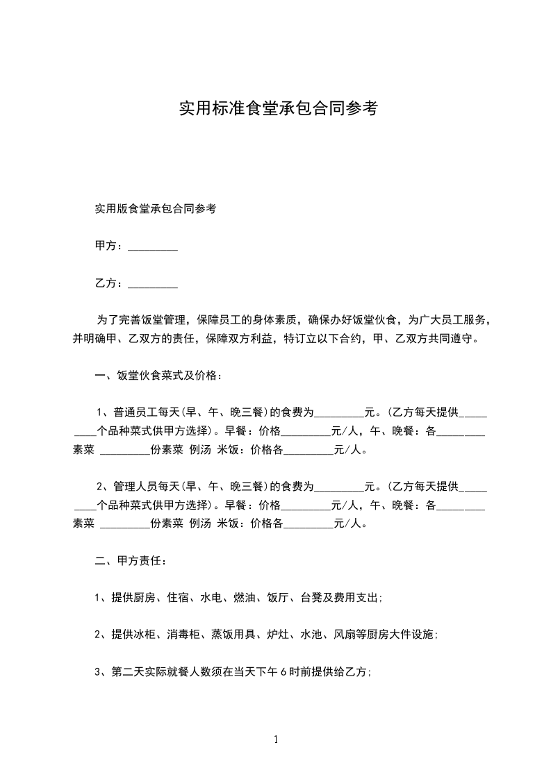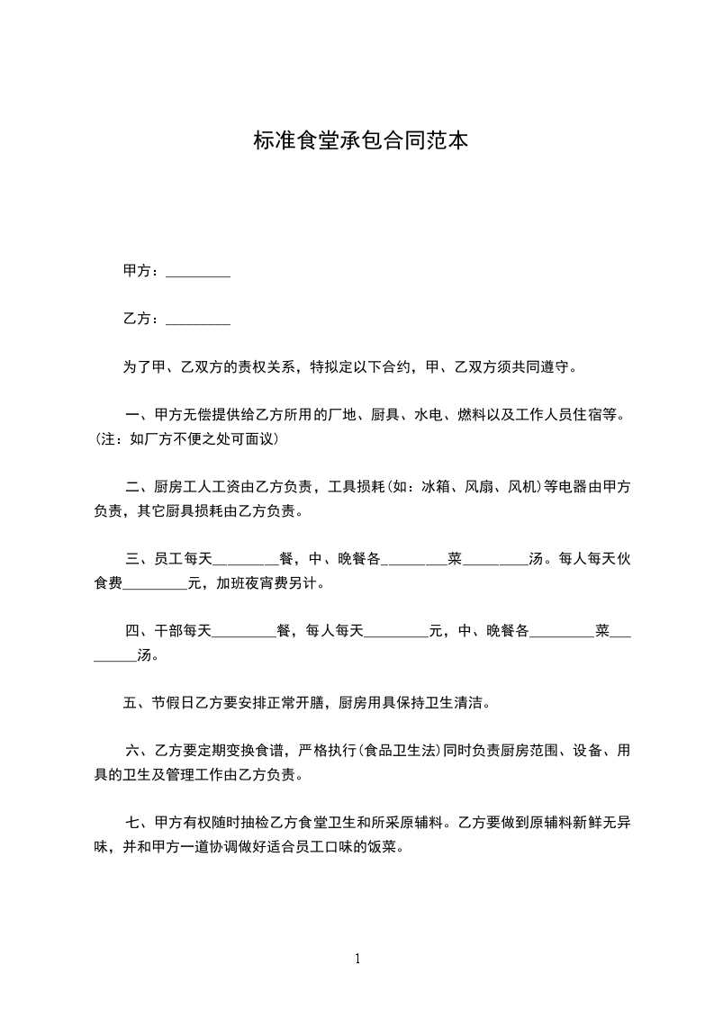 (3)日成本核算分析表一份。 甲方代表: 乙方:________年月____日________年月____日 标准食堂承包合同范本三 甲方:_________ 乙方:_________ 为了甲、乙双方的责权关系,特拟定以下合约,甲、乙双方须共同遵守。