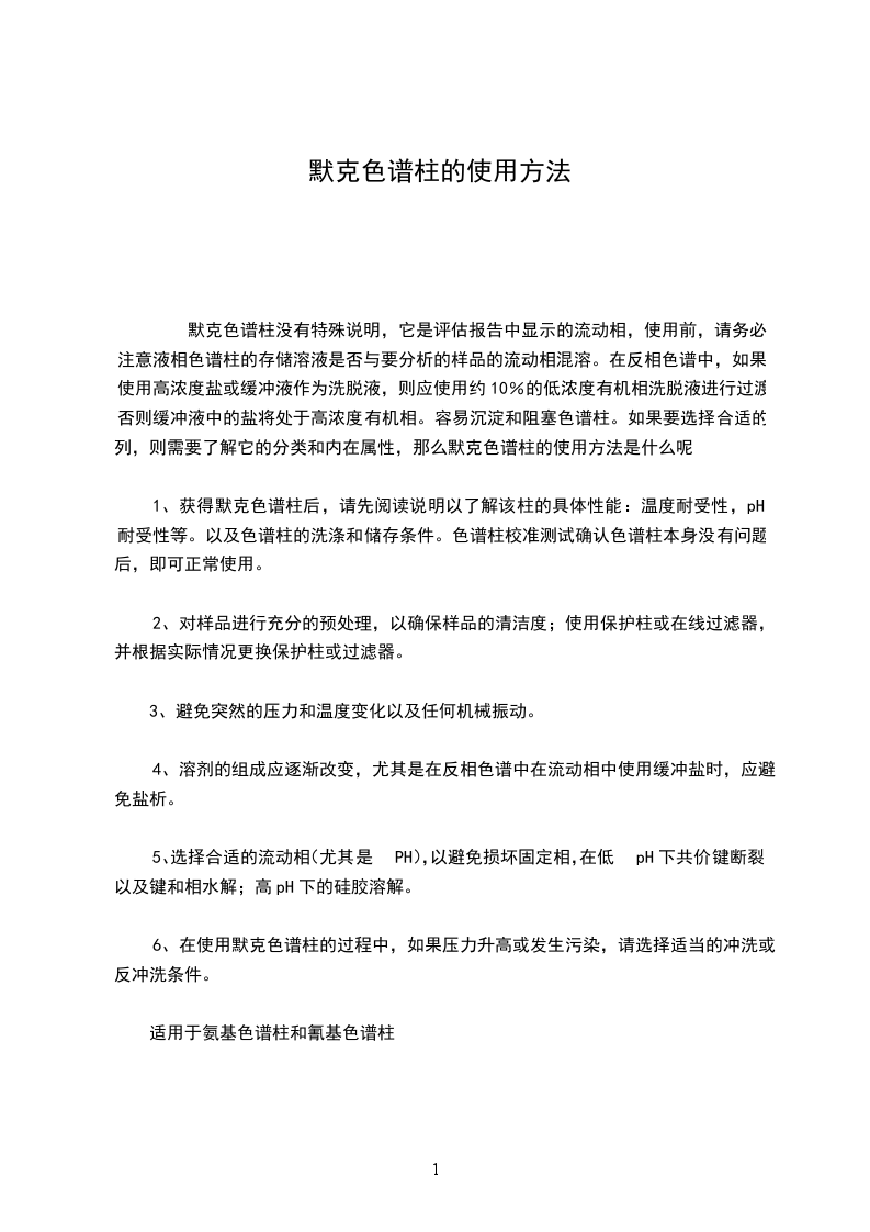 1、获得默克色谱柱后,请先阅读说明以了解该柱的具体性能:温度耐受性,pH耐受性等。以及色谱柱的洗涤和储存条件。色谱柱校准测试确认色谱柱本身没有问题后,即可正常使用。