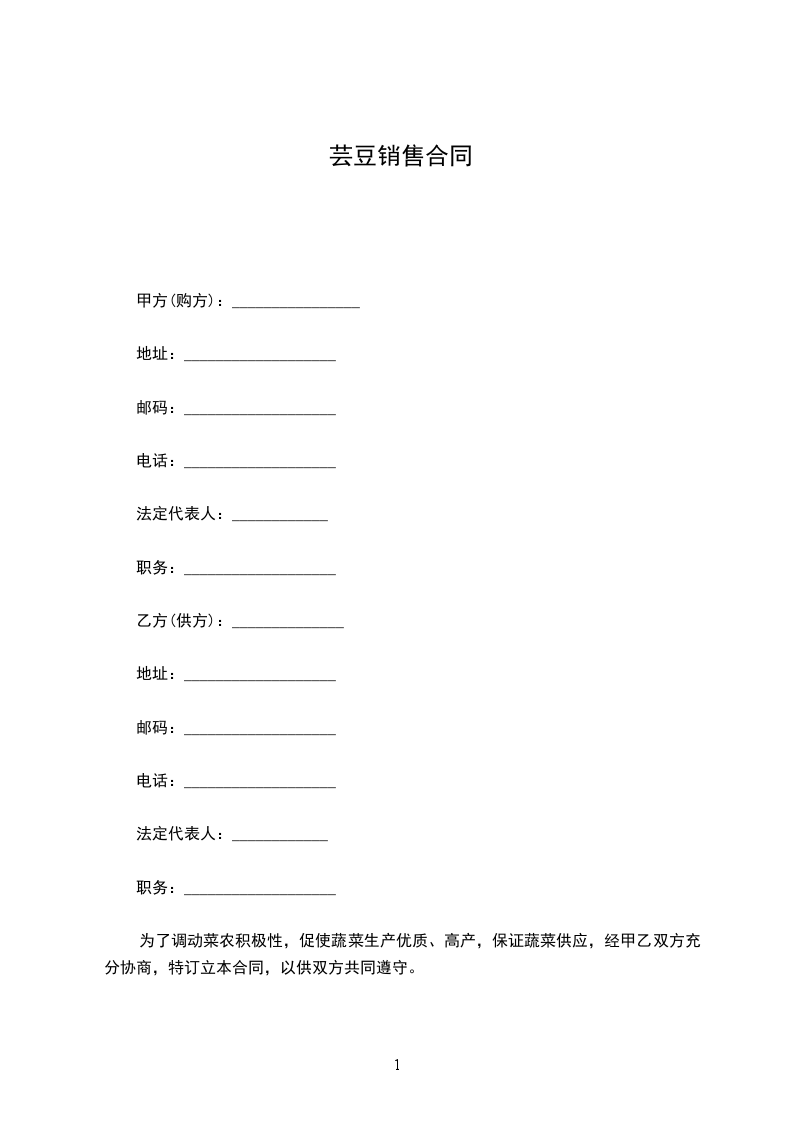 为了调动菜农积极性,促使蔬菜生产优质、高产,保证蔬菜供应,经甲乙双方充分协商,特订立本合同,以供双方共同遵守。