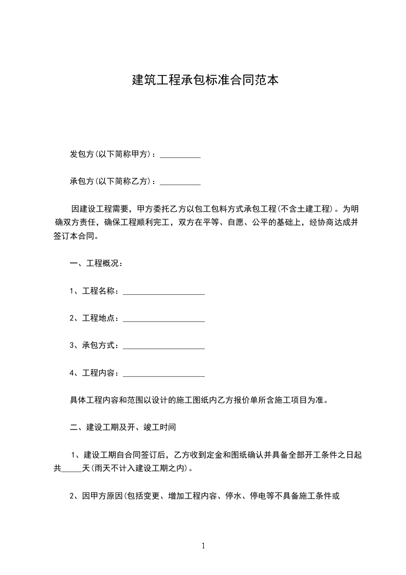 1、建设工期自合同签订后,乙方收到定金和图纸确认并具备全部开工条件之日起共_____天(雨天不计入建设工期之内)。