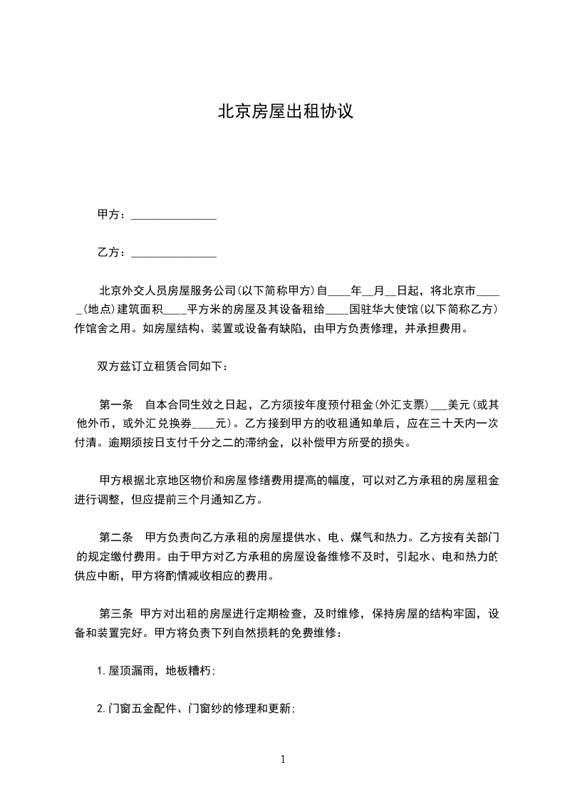 (一)甲方出租给乙方的房屋位于____市____区寺贝新街4号105,建筑面积19.08平方米。